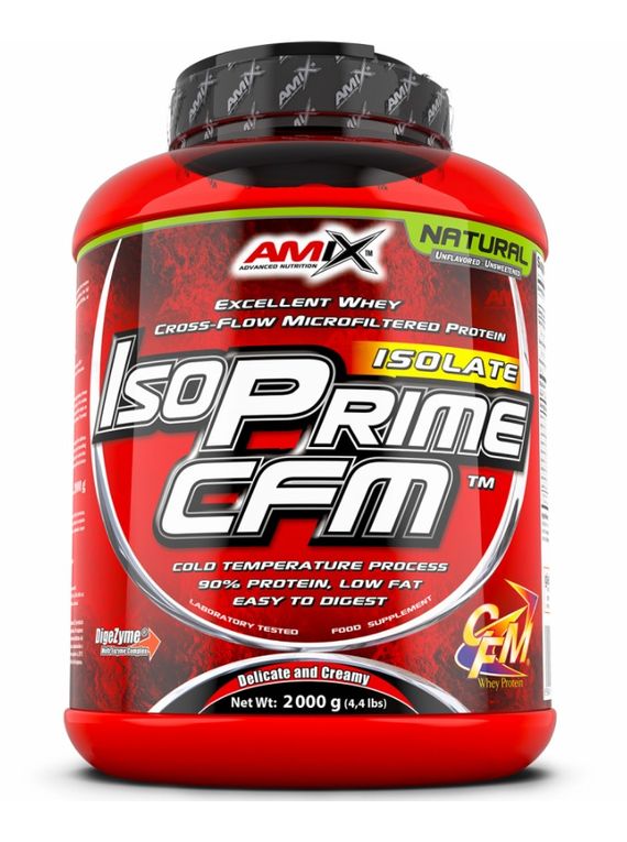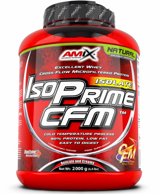 IsoPrime CFM® is a premium quality whey protein isolate containing 90 % of protein, that ensures a high biological value. This high quality product is fast digestible for the organism. It delivers the full spectrum of amino acids naturally found in whey protein, including the highest concentration of BCAA, as well as other essential aminos. CFM® protein is low in fat!