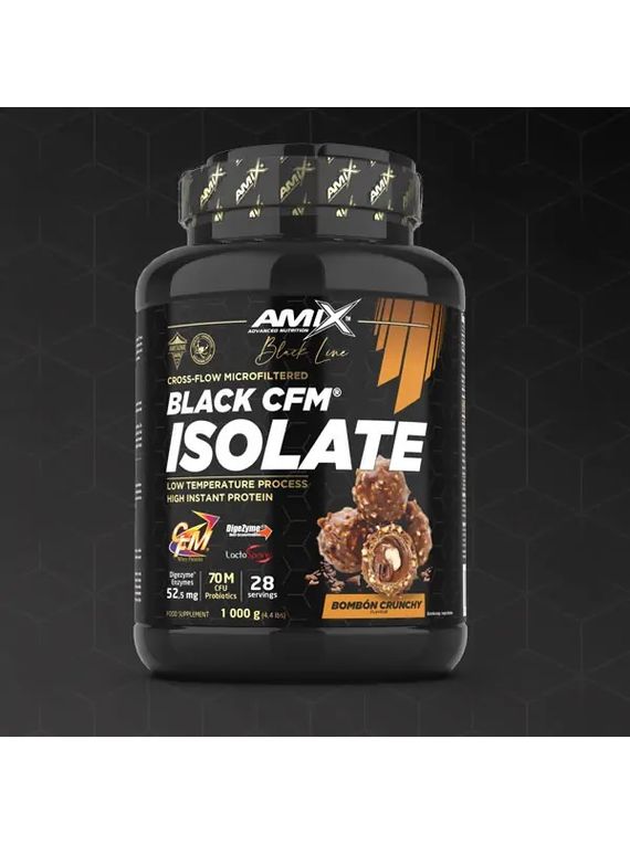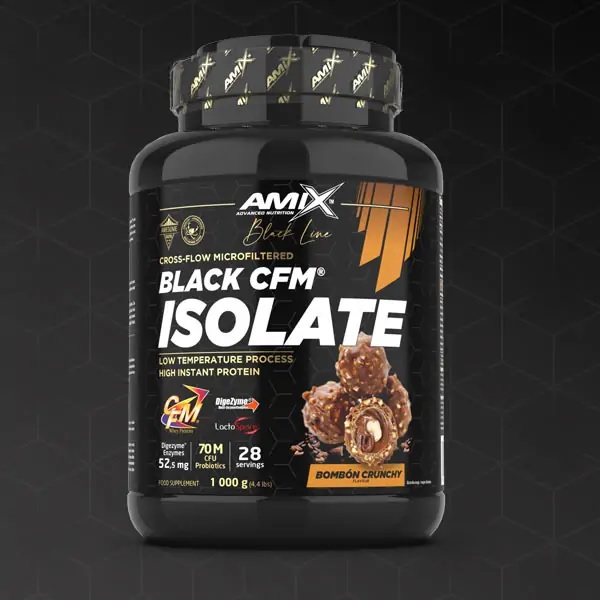 AmixTM Black CFM® Isolate is a premium quality whey protein isolate enriched with probiotics (LactosporeTM) and enzyme complex Digezyme® . Thanks to that the Black CFM® Isolate is really fast and easy digestible. It delivers the full spectrum of amino acids naturally found in whey protein, including the highest concentration of BCAA, as well as other essential aminos. Protein contributes to a growth in muscle mass to the maintenance of muscle mass.