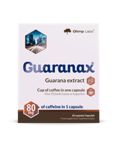 Olimp Guaranax – food supplement in capsules. The product contains caffeine from guarana extract which contributes to maintain physical and psychological vitality as well as to control body mass.